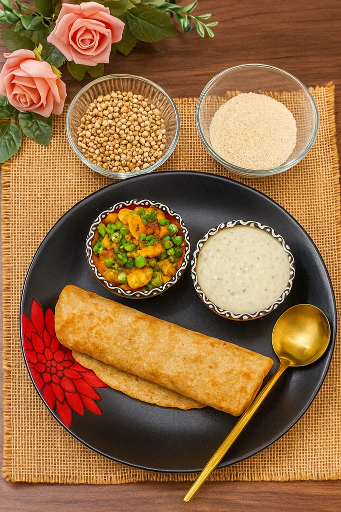 Navratri fasting is a beautiful reminder of how food can be simple, wholesome, and yet deeply satisfying. This 2 millets dosa combines sorghum (jowar) and barnyard millet (samak)—two gluten-free grains that are light on the stomach, rich in minerals, and perfect for vrat-friendly meals. With just a little curd and fresh curry leaves, the batter […]